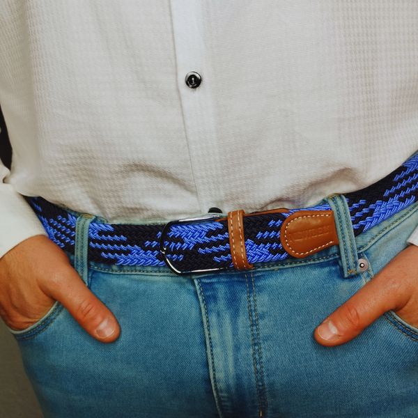 Disponible en tonos versátiles como (Azul Claro) y (Azul Oscuro), este cinturón es la elección perfecta para hombres que buscan destacar su estilo con un toque deportivo y moderno.